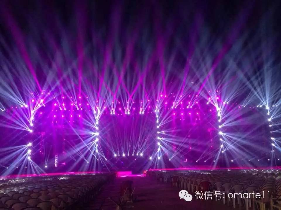 演唱會現(xiàn)場燈光由歐瑪燈光提供,整場演出采用了歐瑪旗艦產(chǎn)品MOORE 230W光束燈,380W光束燈,1500W搖頭燈系列的染色燈、圖案燈等產(chǎn)品近300臺。