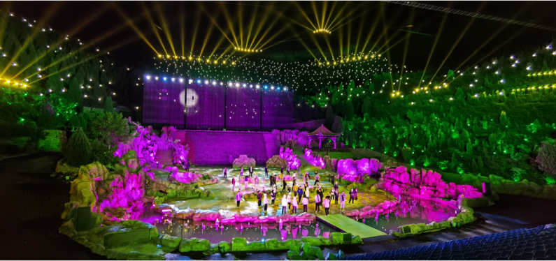 在此背景下,大型實景光影秀《好漢山東》應運而生!由山東石崮寨都市農業生態園股份有限公司出品,巔峰智業旗下子公司北京中視巔峰光影科技有限公司承制。中國知名旅游專家、巔峰智業創始人劉鋒博士擔任總策劃,光影秀創始人、中視巔峰首席專家曲國軍擔任總導演,中視巔峰總經理、舞美燈光技術總顧問雷奎擔任總制作。