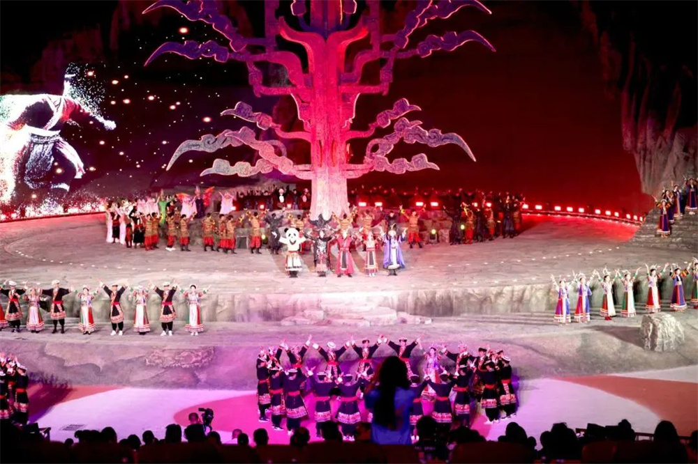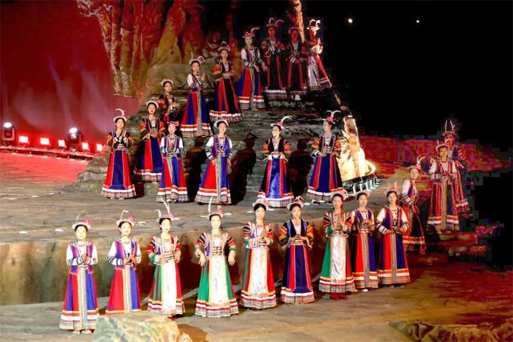 在歐瑪燈光絢麗多彩的加持下,白馬人的非遺文化得到前所未有的生動呈現: