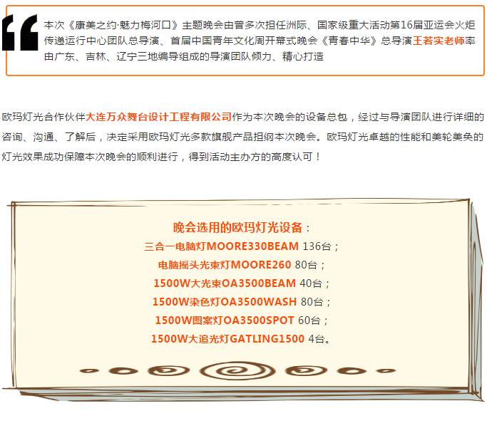 Omarte歐瑪燈光獨(dú)家全程護(hù)航本次《康美之約·魅力梅河口》主題晚會(huì),300多臺(tái)歐瑪燈光為梅城人民送上一場饕餮視覺盛宴!