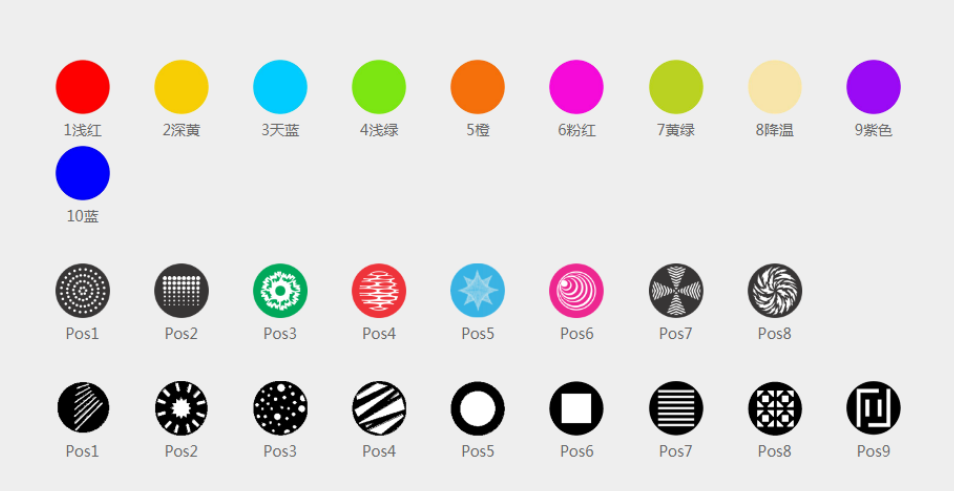 ·?1個旋轉(zhuǎn)圖案盤:8個插拔式的旋轉(zhuǎn)圖案片+白圓;帶圖案抖動和任意定位功能