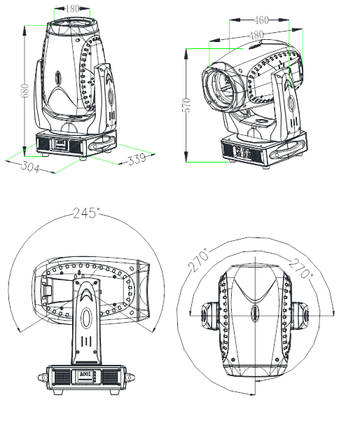 ·?DMX 信號連接: 3芯?或者5 芯XLR 輸入和輸出。
