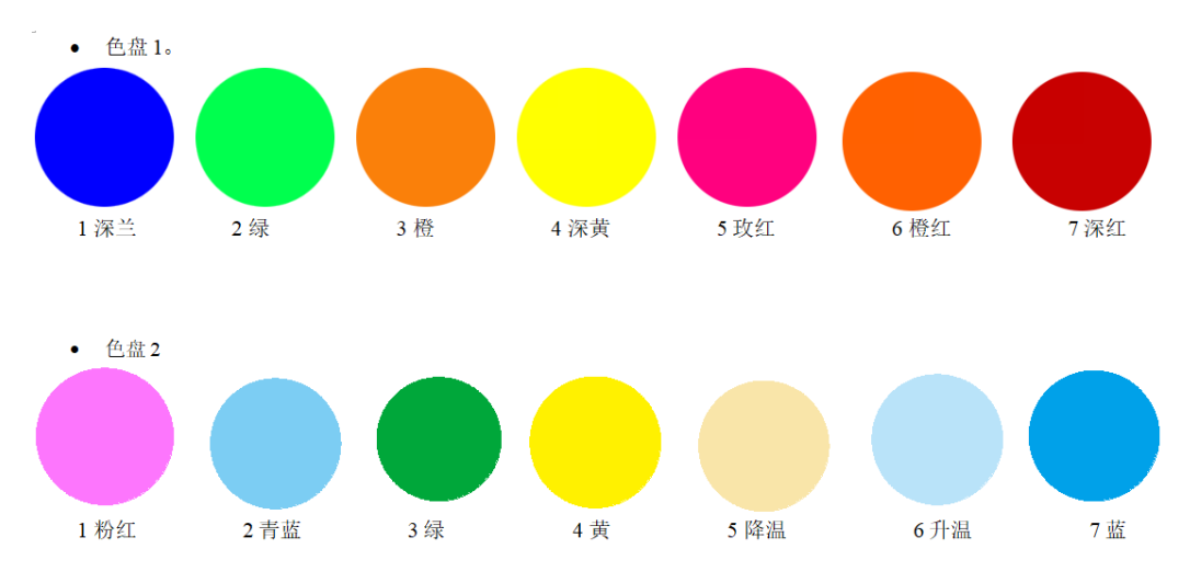 ·?2個(gè)顏色盤:各有7個(gè)顏色片+空白;帶雙向旋轉(zhuǎn)的彩虹效果